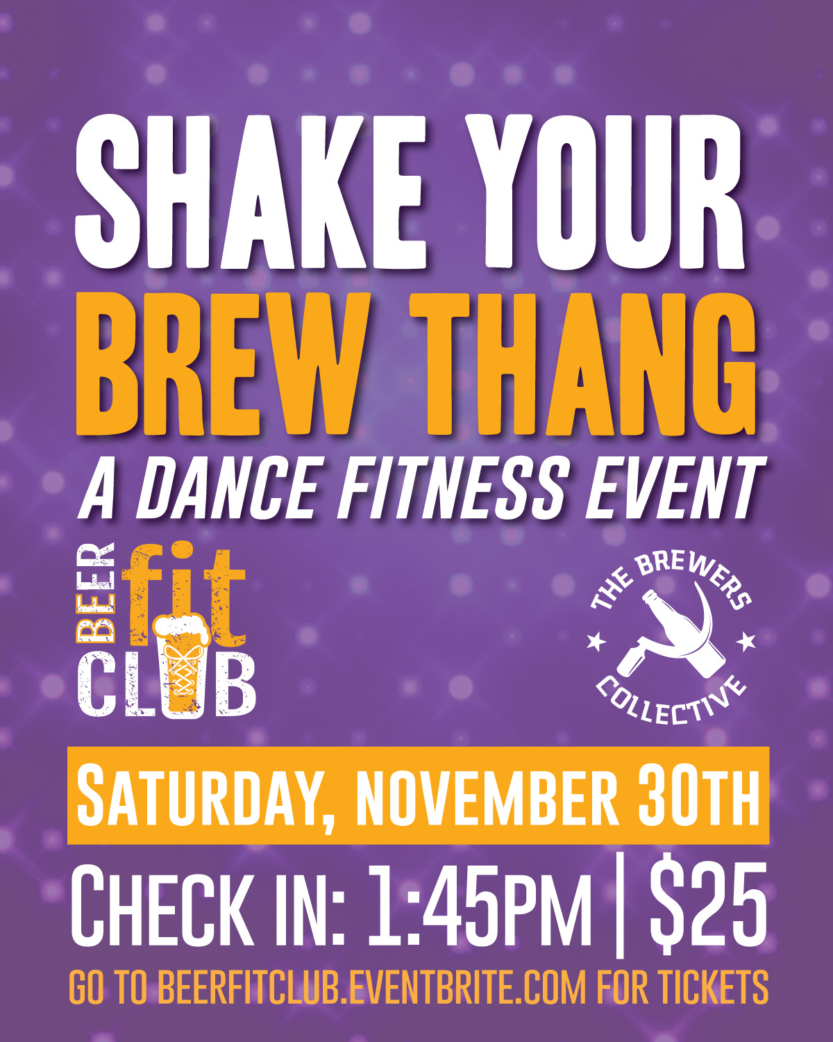 This ain’t your mama’s Zumba class. Beer Fit Club is debuting our new dance fitness event, “Shake Your Brew Thing”. Shake your glASS off. You’ve done Beer + Yoga, Brewery Bootcamp, Booty Beercamp, and Mindful Pintfull with us and we’re bringing you this new exciting event for the end of 2019.
